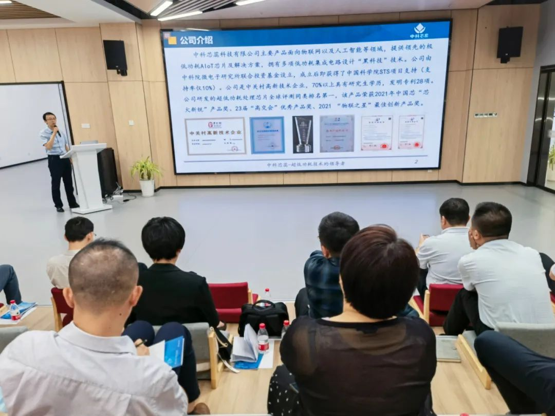 活动最后,在科学岛站路演大厅,中科芯蕊、苗米科技作为优秀双创项目企业代表分别向参会人员展示其核心技术、产品应用场景、市场前景等,现场近10家投资组织代表坐席提问,进行深入研讨。