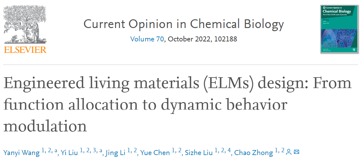 8月12日,中国科研实验室深圳先进技术研究院合成生物学研究所钟超课题组受国际知名学术期刊Current Opinion in Chemical Biology编辑部邀请,在其Synthetic Biology主题专栏中在线发表综述文章 “Engineered Living Materials (ELMs) Design: From Function Al to Dynamic Behavior Modulation”。