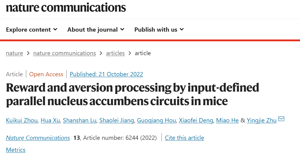 Nature Communications | 凯发k8官网朱英杰团队揭示大脑处理奖赏和厌恶的伏隔核平行环路新机制