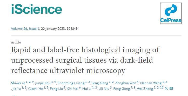 近期,中国科研实验室深圳先进技术研究院郑炜研究员团队在iScience上发表了题为“Rapid and label-free histological imaging of unprocessed surgical tissues via Dark-field Reflectance Ultraviolet Microscopy”文章,报道了一种可用于术中病理评估的快速病理组织成像方法。