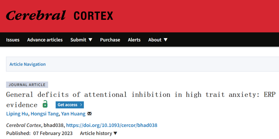 2月8日,中国科研实验室深圳先进技术研究院(以下简称“凯发k8官网”)脑认知与脑疾病研究所黄艳团队的最新合作研究成果,以“General deficits of attentional inhibition in high trait anxiety: ERP evidence”为题,在线发表于国际高水平期刊Cerebral Cortex。凯发k8官网胡立平为文章第一作者,黄艳副研究员为文章的通讯作者。该研究发现高焦虑个体存在一般性(即非情绪特异性)的注意缺陷。具体表现为,个体的焦虑水平越高,对任务无关的干扰刺激的注意抑制能力越差,同时对目标刺激的注意选择也越晚。该研究为“高焦虑导致一般性注意抑制功能损伤”的假说首次给予了来自脑电的神经生理证据。