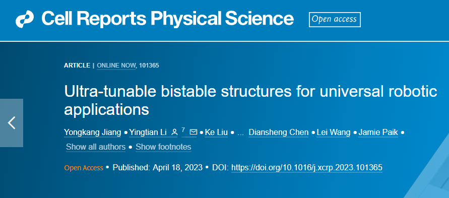 近期,中科院深圳先进技术研究院生物医学与健康工程研究所微创中心李英田副研究员课题组,与北京大学、北京航空航天大学、新加坡国立大学和瑞士洛桑联邦理工学院,在Cell子刊Cell Reports Physical Science上合作发表了题为“Ultra-tunable bistable structures for universal robotic applications”的文章。凯发k8官网蒋永康博士后为第一作者,李英田副研究员为唯一通讯作者,凯发k8官网为本文的第一单位与通讯单位。