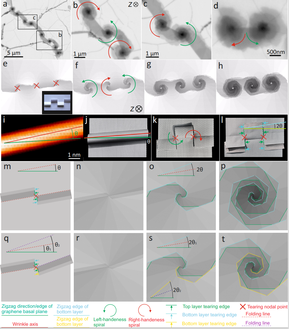 相关研究成果以“顺利获得石墨烯螺旋的一维到二维的生长将手性转化为转角”(Conversion of Chirality to Twisting via 1D-to-2D Growth of Graphene Spirals)为题发表在国际知名期刊Nature Materials上。