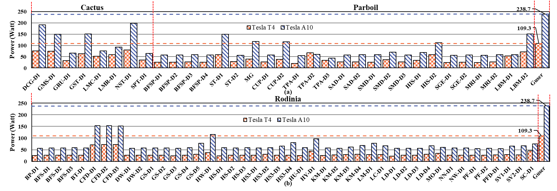 该项研究致力于准确评估通用计算GPU(GPGPU)的极限功耗,提出了一种GPGPU极限功耗测试程序自动生成方法, 为GPGPU供电和散热系统的优化设计给予依据。“Power stressmark”对于估计GPGPU 热设计功耗 (TDP) 以确保高效的功耗控制至关重要。Guser是首个生成 GPGPU Power stressmark的系统方法。主要包括三个关键方法:第一时间,指令功耗分析,分析了每个算术指令在不同操作数数据宽度下的功耗行为、执行时间、流水线利用率和硬件单元占用情况;其次,基于流水线的指令分组,用于将所有 PTX 指令分类为多个组;最后,量化功耗影响因子的重要性,用于选择少量但重要的可调节参数。基于GPGPU Tesla T4(图灵架构)和 Tesla A10(安培架构)的实验表明,使用Guser为 T4 生成的 Power stressmark(T4-stresser)功耗达 109.3 瓦特,以及为 A10 生成的Power stressmark(A10-stresser)功耗达 238.7 瓦特,分别比当前最先进CPU Power stressmark方法高出 48.7% 和 73%。 此外,T4-stresser 和 A10-stresser 的功耗明显高于当前主流的三个基准测试程序集(Cactus、Rodinia 和 Parboil)中任何基准测试所达到的功耗。