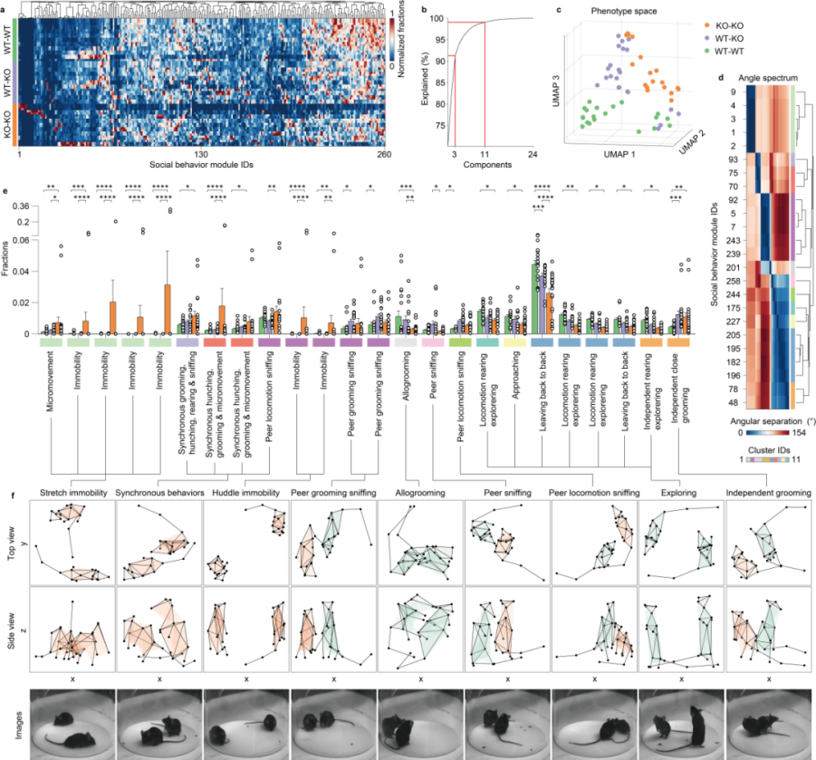 该技术实现了自由社交动物模型的无标签、高精度三维姿态估计、零样本身份识别和精细化社交行为分类,真正解决了精确检测动物社交行为的多个重要难点,有望为社交行为神经环路机制的研究带来研究范式上的变革创新。该工作为科技创新2030-“脑科学与类脑研究”重大项目“社交障碍的神经环路机制与干预研究”的实施,给予了重要的精细行为数据分析支撑。
