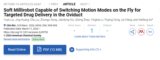 ACS Nano | 凯发k8官网徐海峰团队开发用于输卵管内生物样品转运的磁驱软体机器人