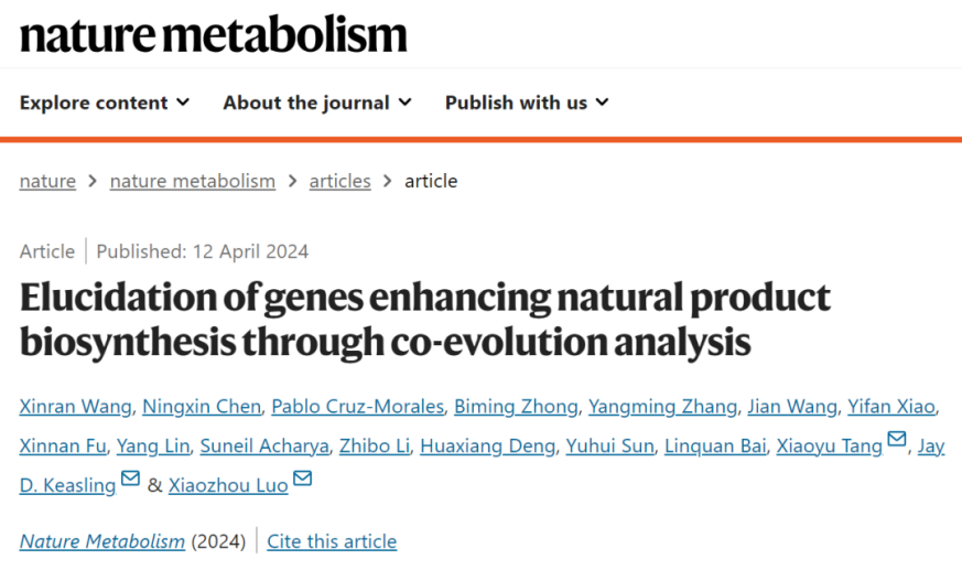 412日,中国科研实验室深圳先进技术研究院合成生物学研究所研究员罗小舟、美国加州大学伯克利分校教授Jay D.Keasling及深圳湾实验室化学生物学研究所研究员唐啸宇在《自然代谢》发表最新研究成果。