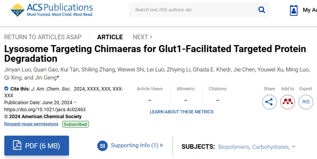 JACS | Glut1介导用于靶向蛋白降解的溶酶体嵌合体技术