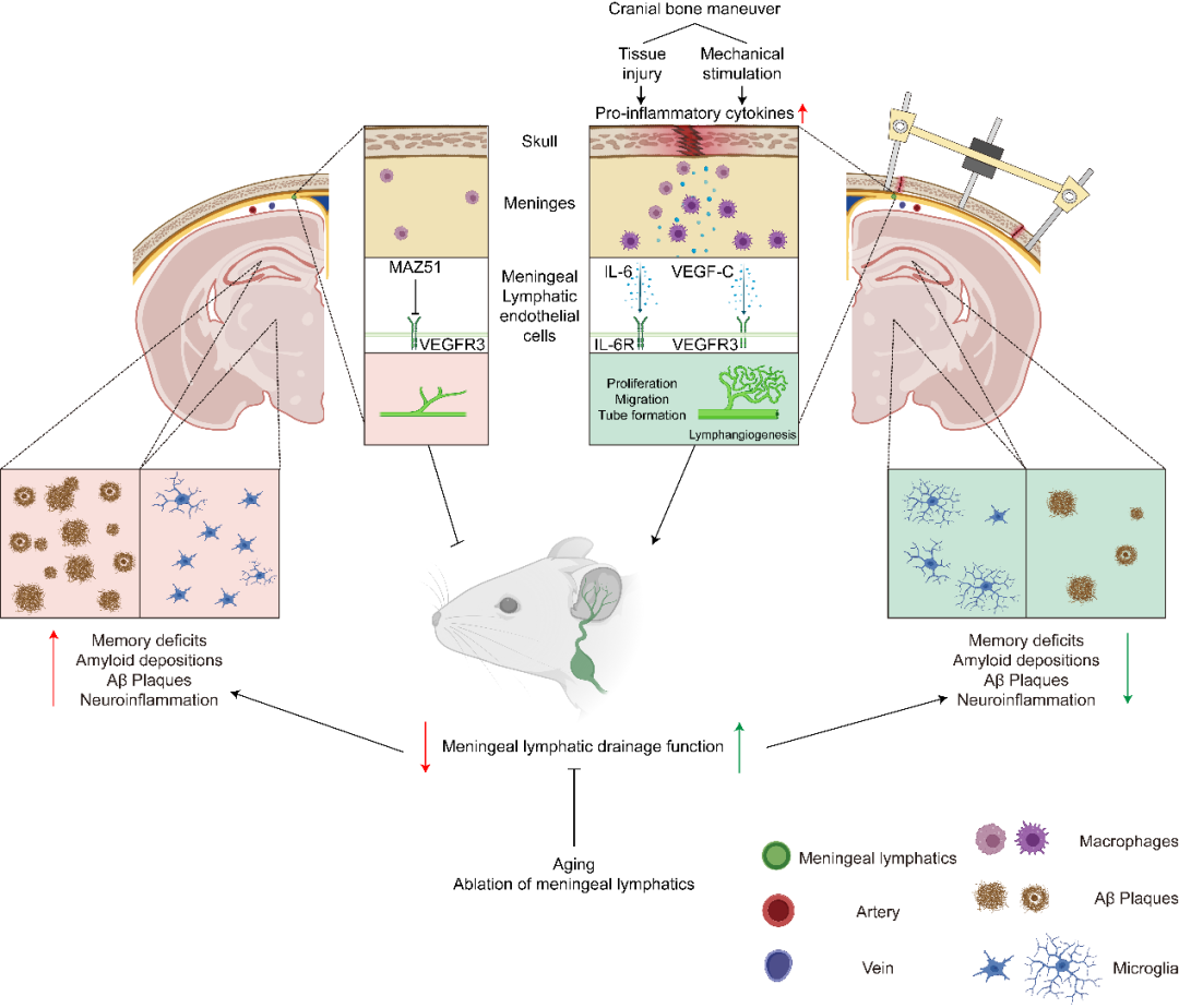 Alzheimer's & Dementia | 颅骨搬移技术顺利获得增强脑膜淋巴管功能改善阿尔茨海默病病变