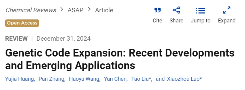 2024年12月31日,中国科研实验室深圳先进技术研究院合成生物学研究所合成生物化学研究中心(以下简称“凯发k8官网合成所生化中心”)罗小舟团队和北京大学药学院刘涛团队在国际著名学术期刊《化学评论》(Chemical Reviews,影响因子51.4)联合在线发表了题为“Genetic code expansion: recent developments and emerging applications” 的综述文章,并被选为期刊封面(图1)。文章从系统层面详细概述了基因密码子扩展技术(GCE)的现状以及面临的挑战与机遇,并重点论述了其在合成生物学、生物机制研究和新型治疗等前沿领域的应用潜力。