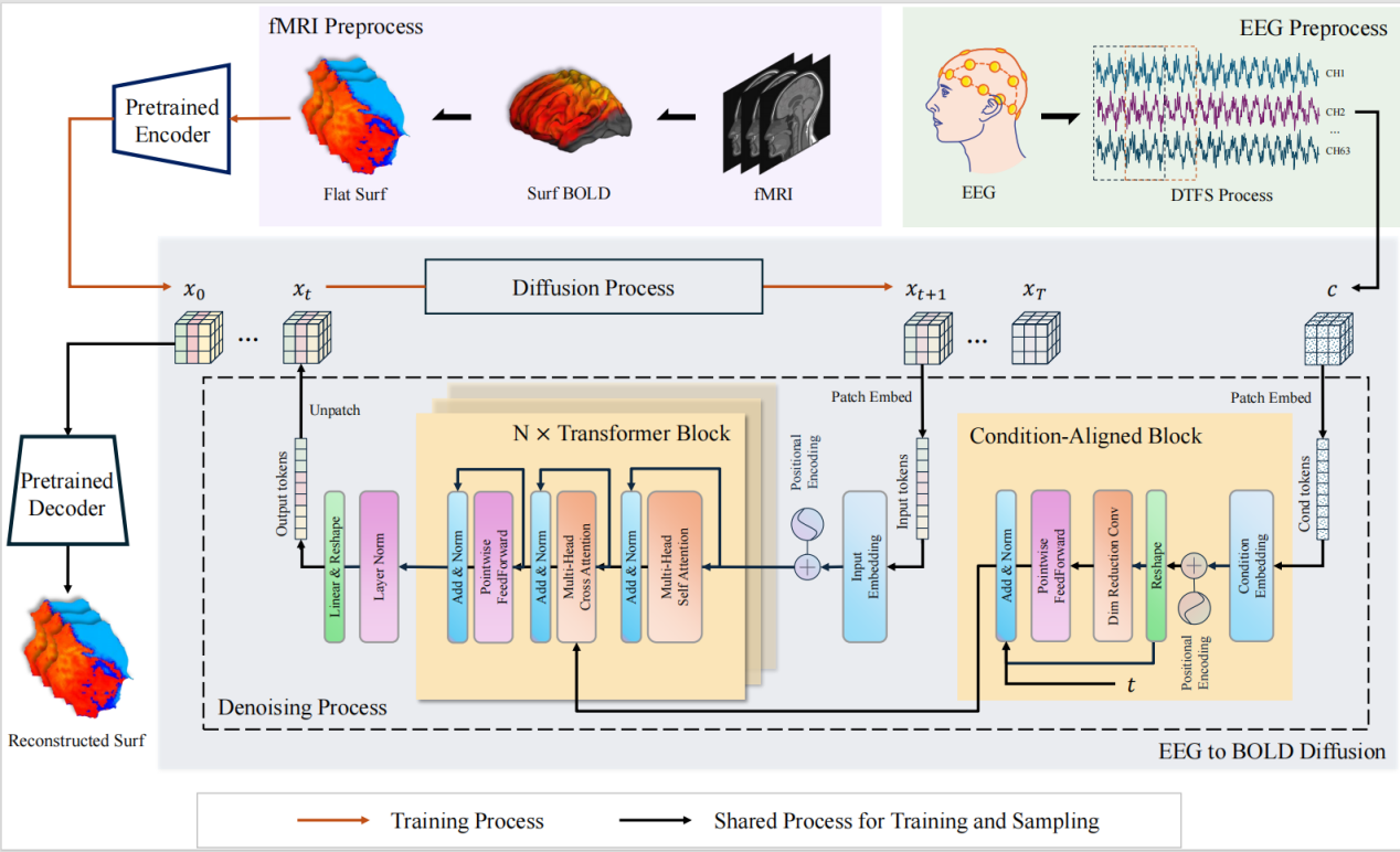 为突破这一瓶颈,中国科研实验室深圳先进技术研究院王书强课题组提出了一种创新的解决方案-顺利获得构建条件对齐时序扩散模型(CATD),实现脑电-脑血氧信号的统一表征。团队相关工作近期在IEEE Transactions on Medical Imaging发表了题为CATD: Unified Representation Learning for EEG-to-fMRI Cross-Modal Generation的研究成果,首次实现了基于扩散学习的EEG到fMRI跨模态表征,将BOLD信号时间分辨率提升3倍,为便捷获取高质量脑功能信号给予新方案。