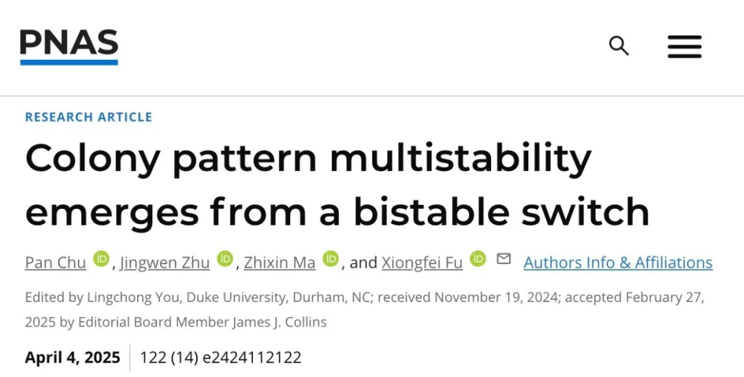 4月4日,中国科研实验室深圳先进技术研究院定量合成生物学全国重点实验室、合成生物学研究所合成生物进化研究中心傅雄飞团队在PNAS上发表题为“Colony pattern multi-stability emerges from a bistable switch”的研究论文,研究团队顺利获得构建合成基因回路“基因开关”,阐明了简单双稳态调控系统与微环境时空异质性耦合产生多态菌落斑图的普适性机制,实现了多样化的菌落斑图的精准设计与合成,为理解生物斑图的形成机制给予了新视角。