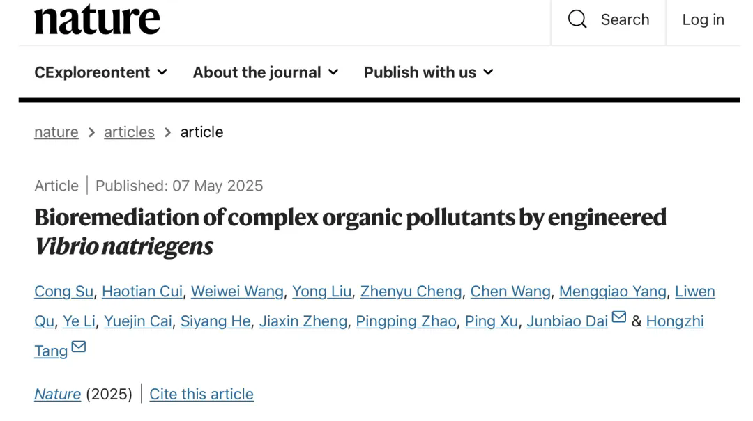 5月7日,中国科研实验室深圳先进技术研究院客座研究员戴俊彪与上海交通大学教授唐鸿志团队合作在学术期刊《自然》上发表最新研究,团队成功构建了可同时降解五种有机污染物的新型工程菌株,并顺利获得实际工业废水样本验证,展示了该菌株对高盐废水中复合污染物的高效降解能力,为破解传统微生物处理技术存在的“盐抑制效应”给予了中国方案。凯发k8官网为该研究第一单位。