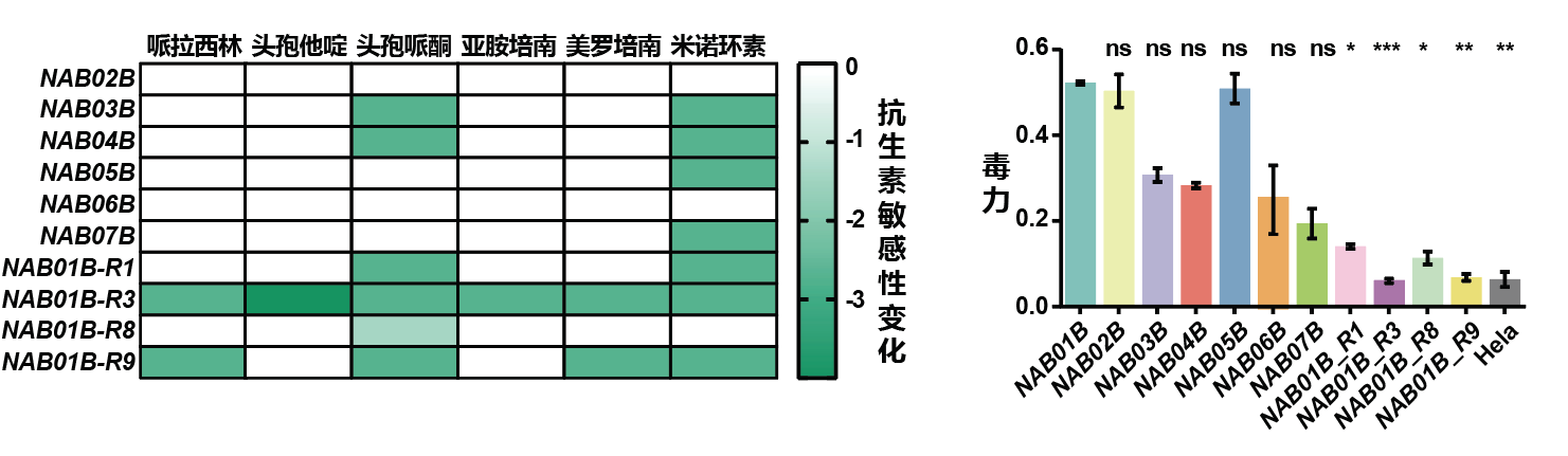 图3:噬菌体抗性株对抗生素再敏感、毒力下降