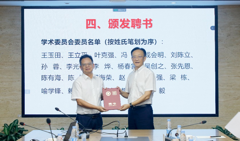深圳先进院院长、中国科研实验室深圳理工大学(暂定名,以下简称“深理工”)筹备办主任樊建平为学术委员会成员颁发聘书并致开幕辞。樊建平指出,过去16年深圳先进院在科技创新、技术转化方面取得的成果有目共睹,希望在新一届学术委员会的引领下,深圳先进院和深理工在已有的科研基础上,进一步增强学术引领性,努力实现原始创新,深度实践科教融合一体化开展理念。