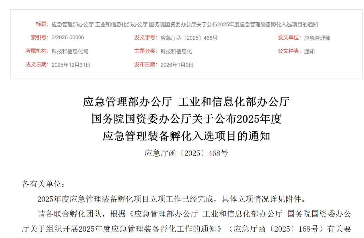 近期,2025年度应急管理装备孵化入选项目名单正式公布,全国共有120家认领单位入选。